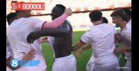 足球西甲巴塞罗那塞维利亚 体育资讯10月06日讯 塞维利亚vs巴萨比赛最后时刻,亚当斯破门为塞维利亚把比分扩大至4-1。塞维利亚因此陷入疯狂庆祝,主帅场边狂奔+挥拳,进球的亚当斯脱衣庆祝,看台上的小球迷激动地落下泪来!